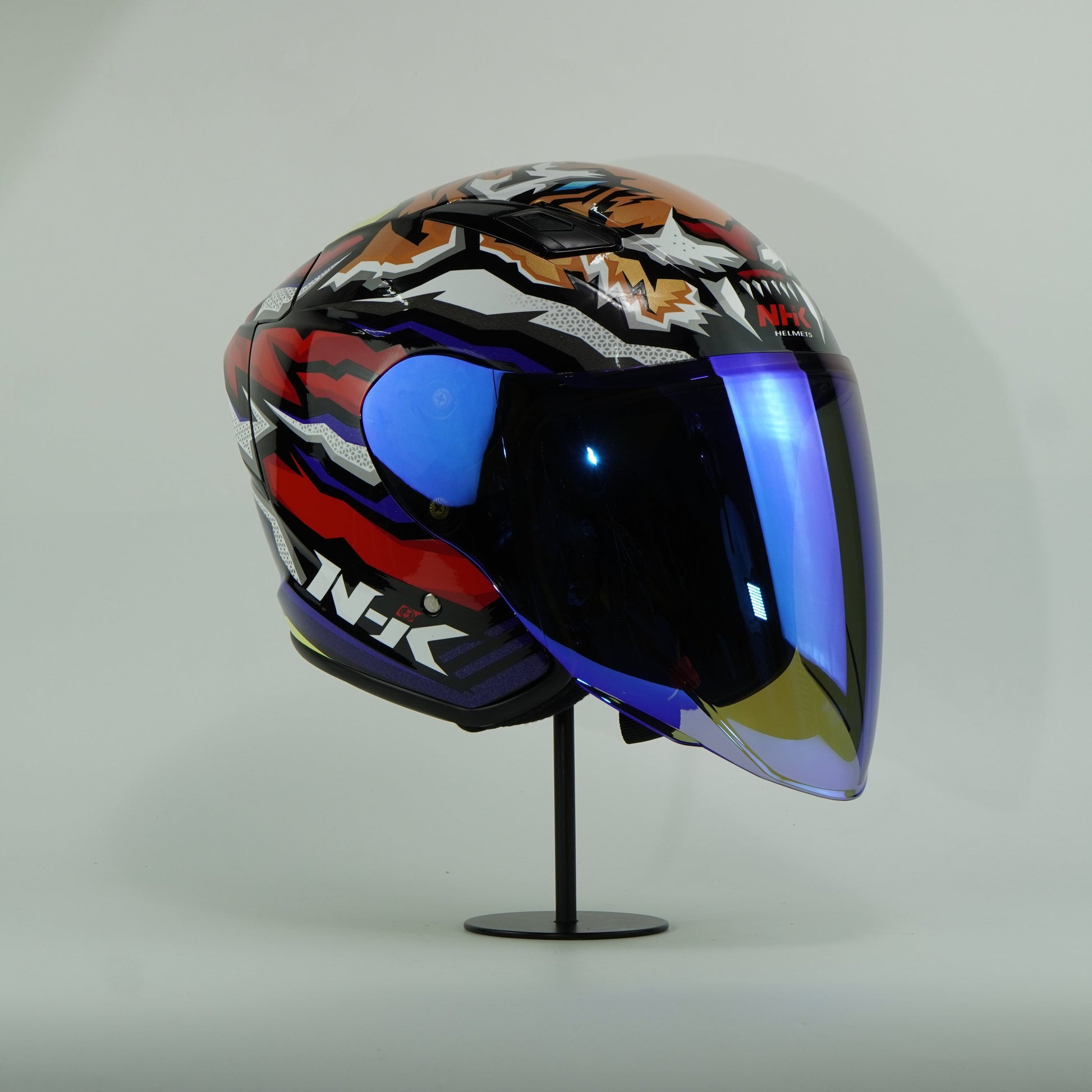 Introducing the NHK Helmet S1 GP S Damok #3 (Tiger) in a striking Black Glossy finish, designed for those who prioritize both safety and style on the road. NHK S1 GP upgrade with the newest technology. Now it’s available with a double D-Ring strap and a more comfortable interior liner, also compatible with a pin-lock lens, easy glasses fit and a more stylish look.