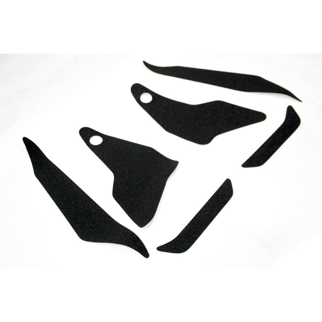 R&G Tank Traction Grip kits are available for many different bike styles and brands, with new applications released regularly. The unique R&G tank texture was specifically designed to be both soft and durable, providing the rider with the grip and feel he/she needs to assist in better bike control, enabling the rider to maintain a stable body position while cornering and braking, whilst also relieving fatigue and providing the rider with complete confidence allowing him/her to fully focus on the road (or track) ahead instead of slipping and sliding on the tank. Each Tank Traction Grip kit is supplied with precision pre-cut adhesive pieces, designed to fit the intended bike, typically in either 2, 4 or 6 pieces (in total) depending on the shape of the tank and adjoining fairing. The high-strength adhesive backing ensures a highly durable product that will stay exactly where you put it, as well as not affecting or damaging paintwork. Each R&G Tank Traction Grip kit is available in black finishes to blend into your bike’s paintwork or stand out, depending on your preference. R&G works in both wet and dry conditions and is equally at home on the track as it is on the commute home!