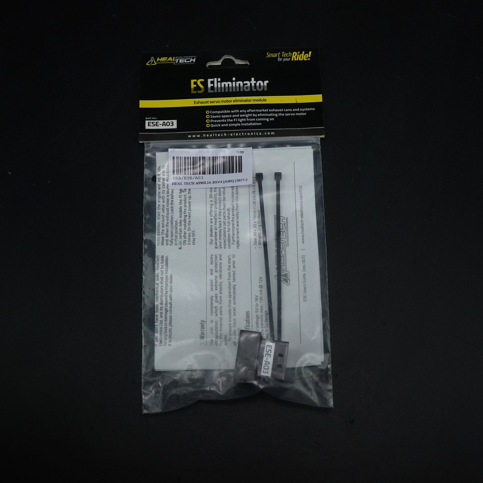 Healtech has thought of the trainers and enthusiasts who are facing these problems by creating the ESE (Exhaust Servo Eliminator - exhaust valve exclusion). With reduced weight (24 grams) and overall dimensions (30x20x13 mm) it contains a microprocessor that guarantees optimal operation and compatibility with different systems.